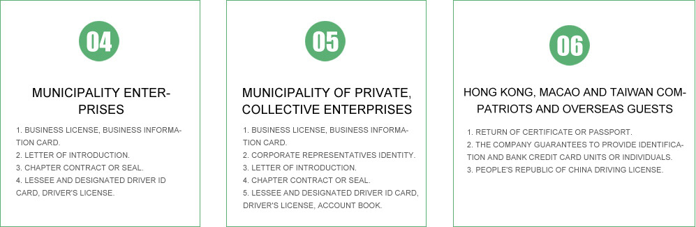 2, city residents have to drive your own car or driving by a designated driver, and charge booklet; private, collective enterprises lease specified by the managers themselves or the driver driving, and charge booklet; enterprises and private, collective enterprises must be more than 50 million registered capital.