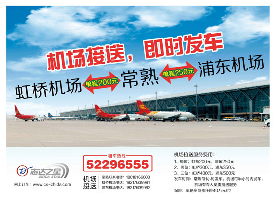 机场接送服务费用: 1.每位:虹桥200元,浦东250元 2.两位:虹桥300元,浦东350元 3.三位:虹桥400元,浦东500元 发车时间:常熟每1小时发车…